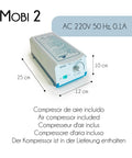 Questo materasso antidecubito con compressore, modello Mobi 2 di colore blu, è indicato per la prevenzione di ulcere da pressione di fase II in pazienti che trascorrono lunghi periodi a letto. La prevenzione delle ulcere da pressione o escare include anche una buona cura della pelle, una nutrizione ottimale, l'adozione di una postura corretta e l'uso di prodotti antidecubito.