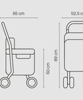 Il manubrio regolabile in 4 posizioni si adatta ergonomicamente a qualsiasi utente e il doppio freno garantisce la massima sicurezza durante gli spostamenti. È dotato di una borsa estraibile e lavabile da 36 L con carico consigliato di 15 kg (cestino). Include un vassoio portaoggetti per bottiglie d’acqua e un supporto per ombrello o bastone.