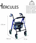 Deambulatore pieghevole Rollator a 4 ruote grandi, colore blu