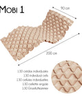 Questo materasso antidecubito a bolle d'aria di colore beige, modello Mobi 1 di Mobiclinic, è indicato per la prevenzione delle ulcere da pressione in pazienti che trascorrono lunghi periodi a letto.