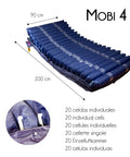 20 celle singole a gonfiaggio alternato offrono sollievo dalla pressione. Funzione alternanza: gonfiaggio/sgonfiaggio ogni 10-12 minuti. Funzione cuscino per maggiore comfort della testa. Celle inferiori per supporto in caso di guasto energetico. Tubazioni con molle interne per mantenere flusso d’aria uniforme. Cinghie CPR per emergenza. Elastico antiscivolo. Include 1 cella di ricambio e connettore rapido per trasformare in materasso statico sigillato.